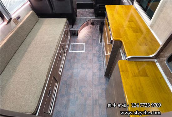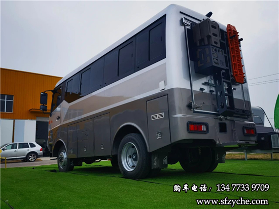 車身右側配備了4m的電動遮陽棚、市電接口、尾部工具箱、戶外照明燈,中置上客門,副駕駛乘客門,車輛門鎖均采用越野專用倉門鎖。