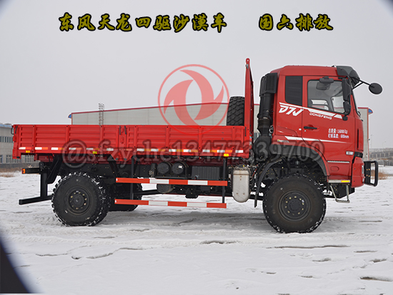 全新國(guó)六東風(fēng)四驅(qū)六驅(qū)沙豹沙漠車為特殊行業(yè)精心打造,適合全地形無路區(qū)域的全時(shí)4×4、6×6驅(qū)動(dòng)車型,選用康明斯9升國(guó)六發(fā)動(dòng)機(jī),動(dòng)力涵蓋340---400馬力,動(dòng)力強(qiáng)勁、性能可靠,采用7噸及10噸級(jí)雙級(jí)輪減前、后橋,離地間隙大、通過性好,前、中后橋配備輪間、軸間差速鎖裝置可適應(yīng)極惡劣道路狀況下的通過要求,先進(jìn)的遠(yuǎn)距離電控氣動(dòng)裝置可實(shí)現(xiàn)高、低檔及前橋鎖止功能的轉(zhuǎn)換,多管旋流式三級(jí)空濾進(jìn)氣系統(tǒng)可有效地阻止極細(xì)微的粉塵進(jìn)入發(fā)動(dòng)機(jī),外接式中央充放氣裝置可同時(shí)或單獨(dú)快速調(diào)節(jié)輪胎氣壓,越野和沙漠輪胎的互換可使車輛通過性適合各種地形地貌,選裝前后液壓絞盤等裝置能使車輛在各種環(huán)境下保持良好的狀態(tài)及自救互救功能,沙漠車使用工況:用于無路地域的貨物運(yùn)輸,適應(yīng)沙漠、浮土、戈壁、礫石、泥濘、山地、崎嶇、冰雪等路況。耐溫±45℃,可作為石油物探、地質(zhì)勘查、大地測(cè)量、文物考古、草原監(jiān)理、畜牧防疫、森林消防、邊境巡邏、沙漠旅游等行業(yè)用車,是改裝專業(yè)工程車如:地震儀器、爆破器材運(yùn)輸、沙漠冷藏、沙漠隨車起重運(yùn)輸、工程搶險(xiǎn)、林業(yè)吊運(yùn)、搶險(xiǎn)救災(zāi)等車輛及越野房車的理想底盤。