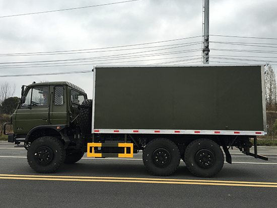 東風(fēng)六驅(qū)越野廂式車(chē)采用東風(fēng)越野卡車(chē)底盤(pán)DFS5160GLJ2 ,東風(fēng)153平頭一排半駕駛室,6*6驅(qū)動(dòng),康明斯210馬力,韶齒6檔變速箱,斷氣彈簧制動(dòng),貫通式中后驅(qū)動(dòng)橋,12.5R20越野胎,軸距 3500+1250mm,加厚雙層大梁,帶軍用保險(xiǎn)杠。六驅(qū)越野廂式車(chē),廂體根據(jù)用戶(hù)需要形式多樣,選裝多樣,可以選裝空調(diào)、側(cè)門(mén)、側(cè)窗、發(fā)電機(jī)、裙邊結(jié)構(gòu)等.