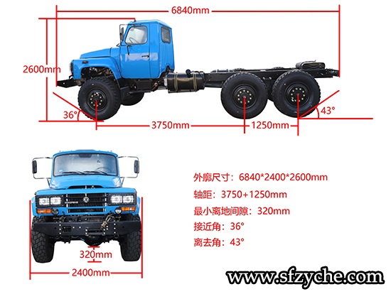 東風(fēng)尖頭六驅(qū)EQ245沙漠車配置: