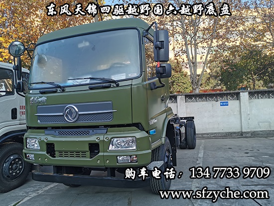 DFV2163GP6DJ型國六排放東風(fēng)天錦四驅(qū)越野底盤,東風(fēng)天錦D530一排半駕駛室,4×4驅(qū)動,康明斯B6.2NS6B210國六發(fā)動機210馬力,最大扭矩:850N.m/1100-1700rpm,排量6.2L、韶齒手動六檔變速箱,東風(fēng)德納車橋,前驅(qū)動橋4.5噸,后橋10噸,10.00R20輪胎,軸距4500mm/4700mm,電動玻璃,方向助力,斷氣剎,ABS,大燈自動調(diào)節(jié),自動調(diào)整臂,選裝原廠空調(diào)。