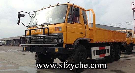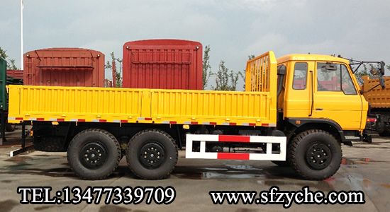 2、詳細(xì)配置:平頭一排半駕駛室,6*6驅(qū)動(dòng),康明斯190馬力,韶齒6檔變速箱,斷氣彈簧制動(dòng),貫通式中后驅(qū)動(dòng)橋,12.5R20越野胎,軸距 3500+1250mm,加厚雙層大梁,貨箱4850mm,帶軍用保險(xiǎn)杠。(新款仿天錦駕駛室加價(jià)1.5萬元)東風(fēng)越野卡車:www.cq664.com