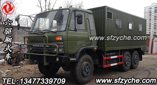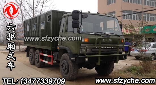 東風(fēng)軍用廂式越野卡車在湖北隨州正式下線,送往新疆喀什征戰(zhàn)沙場,六驅(qū)越野廂式車采用東風(fēng)六驅(qū)軍卡底盤EQ2162GS,發(fā)動機(jī)采用康明斯190馬力中冷增壓,東風(fēng)軍用分動箱,東風(fēng)6擋變速箱,東風(fēng)軍工車橋,全部為軍檢合格產(chǎn)品,采用12.5R20型子午線大花紋沙漠越野胎,車廂整體采用1.5mm瓦楞板,全鋼骨架設(shè)計,更加安全牢固,貨箱尺寸5100*2500*2100.東風(fēng)越野廂式卡車圖片如下: