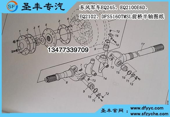東風(fēng)EQ2102六驅(qū)平頭軍車前橋零件號及對應(yīng)名稱: